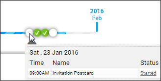 ● As you move over a circle, the start date and status of the activity are displayed. As you move off the circle, the information is hidden again.