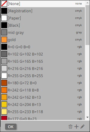 7. When the color is what you want, click OK. It is now displayed at the bottom of the color list.